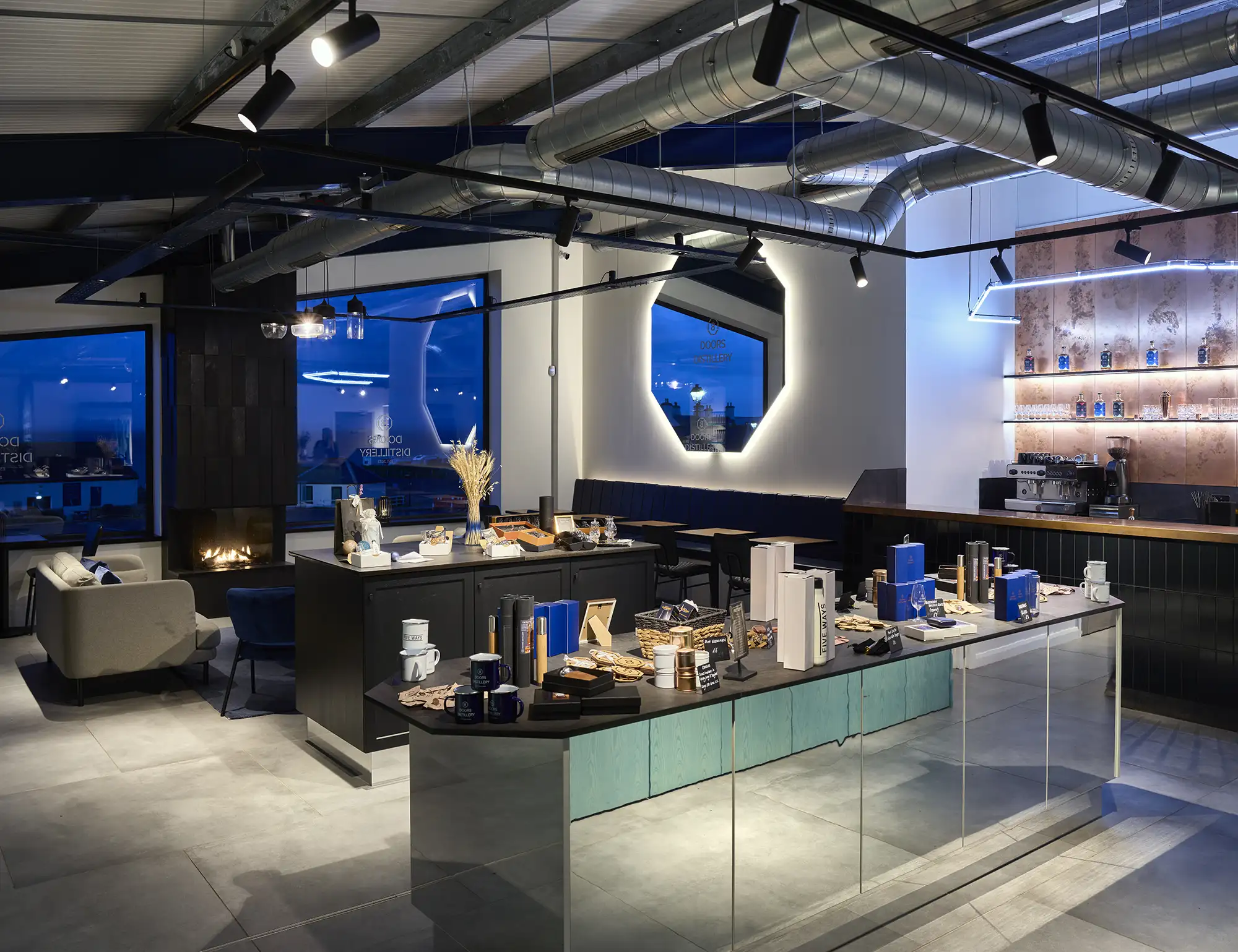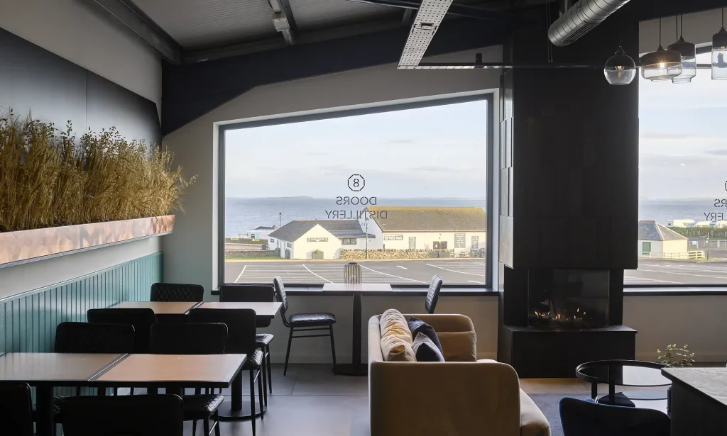 Contemporary, stylish and cosy, we made sure that we incorporated natural elements, such as a large log burner and lounge designed to maximise the views out towards the Atlantic Ocean. The result is a stylish, sustainable distillery that is at one with its unprecedented Scottish surroundings.