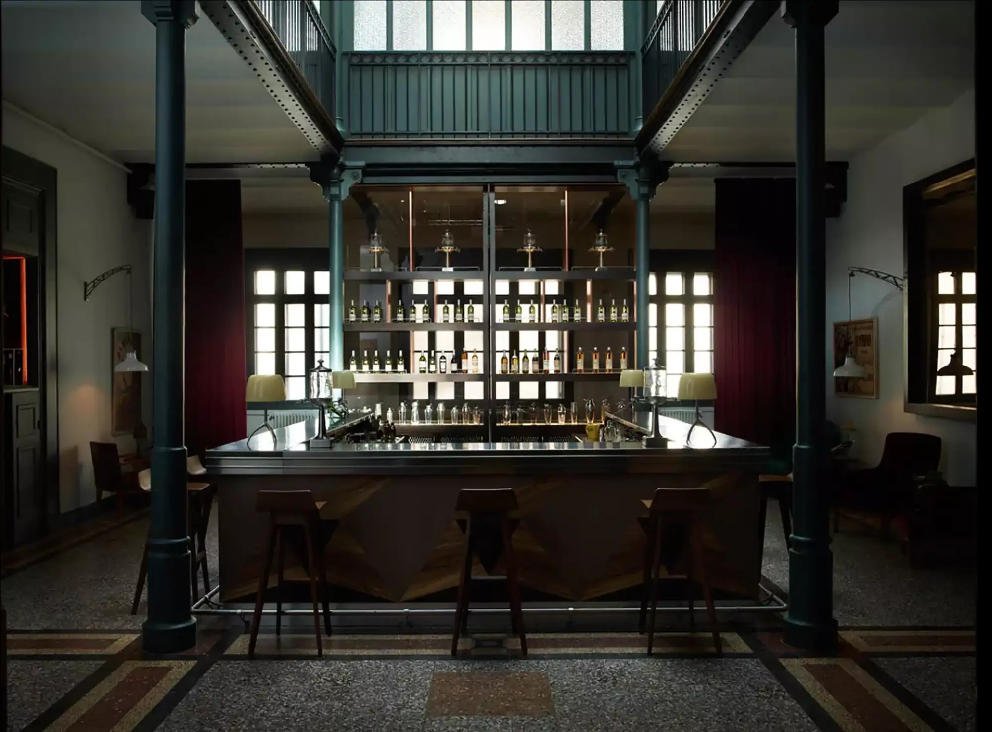 A clever pivoting back gantry was also devised. And to top it all off – a beautiful, classic pewter bar was built, with original Absinthe fountains taking centre stage, and Parisian (sourced from a local flea market) bar-top lamps, fitted within the fabric of the bar. Welcome to France’s new, traditionally remastered Pernod Absinthe Distillery.